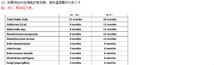 | 1. 微生物檢測瓶除可以檢測活菌外,死菌可以檢測么? 答:不能檢測死菌。 | 2. 微生物檢測瓶可以檢測厭氧菌么? 答:檢測瓶的檢測范圍即包括厭氧菌(亞硫酸鹽梭狀芽胞桿菌 Sulphite reducing Clostridia,產氣莢膜桿菌 Clostridium perfrigens),也包括需氧菌。 檢測不同種微類生物的檢測瓶中試劑不同。對于厭氧菌,我們有特殊的試劑,如檢測產氣莢膜桿菌 Clostridium perfrigens。 | 3. 檢測瓶的檢測原理都分別用到了哪些檢測方法? 答:培養皿法、酶法、免疫法、基因法。 | 4. 對于第 3 題,你能簡要敘述這些方法的優劣勢么? 答:與傳統的培養基法、膠體金、酶免法和 PCR 法不同,德國皇家微生物檢測儀是多種方法的集合。單獨使用一種檢測方法都有自己的缺點:比如, PCR 法需要專業技術人員和昂貴設備; 培養基法操作復雜; 膠體金法靈敏度低; 酶免法特異性捕捉不充分。 德國皇家微生物檢測瓶快速檢測系列產品是以上多種方法的綜合運用,吸收了每種方法的優點,彌補了各種方法的不足。 | 5. 用微生物檢測瓶進行微生物檢測時,步是先放樣本還是無菌水? 答:都可以。 | 6. 對樣本進行微生物接種時,需要在無菌環境下進行么? 答:檢測瓶是通過捕捉特異性,結合多種檢測法進行分析。無菌環境與否均可(臨檢的場所大都是非無菌環境)。 | 7. 檢測瓶可以檢測表面樣本和固態樣本么? 答:可以檢測固態、液態、表面樣本(用所配棉棒沾濕無菌水后涂抹表面)。紙漿等膏狀、糊狀、粘稠狀昂本都可以檢測。 | 8. 檢測瓶在檢測固態樣本時需要對進行研磨、稀釋等前處理過程么? 答:直接將樣本放入檢測瓶,無需任何前處理。 | 9. 每次檢測的無菌水用量是多少? 答:一般是 11ml。如果是檢測液態樣本或水樣本,建議加樣 1ml,加無菌水 10ml。 | 10. 放入樣本和無菌水后,“搖勻使其充分溶解和混合”這一操作步驟,無論定性分析還是定量分析,都是必要的步驟么? 答:是的,搖勻無論是定性還是定量分析都是必要步驟。 | 11. 不同的微生物對應的孵育溫度是一樣的么?請舉例說明。 答:不一樣。37 攝氏度居多:活菌總數、沙門氏菌、李斯特菌等,大腸桿菌 44 攝氏度等,詳細請參考對照表。 | 12. 若是檢測冷菜或者冰欺凌這樣的樣本,孵育是否應該低溫進行? 答:對檢測樣本自身的溫度沒有限制,檢測樣本中微生物,請嚴格遵照所檢測微生物對應的孵育溫度,依然根據對照表。 | 13. 如果想加快檢測時間,孵育溫度可以調至高于所檢測微生物對應的孵育溫度? 答:不可以,嚴格遵照對照表。 | 14. 操作手冊規定放入的樣本量為多少? 答:0.1g‐1.0g 或 0.1ml‐1.0ml。 | 15. 若放入的樣本量高于規定的樣本量,檢測結果會不同,或者檢測結果(定量時)增加么? 答:樣本量多一些或少一些,定量分析結果不會有變化。 原因:傳統的微生物學檢測方法,包括參考方法,即基于固體選擇性培養基的菌落計數法內在的統計分散度(統計名詞,也稱為統計變異,是變量或概率分布蔓延,常見的例子是方差,標準差和四分位距。)大于 50%。很多實驗室已經證實皇家生物檢測法與其他檢測方法比統計分散度低,可信度高。但不管怎樣,25‐30%的統計分散度還是有的。另外,由采樣產生的統計分散度同樣應該考慮在 內,尤其是微生物經常容易繁殖的固態的肉制品類。 因此,加樣是 0.5g 或 1.5g 所得的結果在統計上是等價的(和其他任何方法獲得的結果相等)。 | 16. 對于面粉這類低密度的散裝樣本,可以照常檢測么? 答:可以。 | 17. 對于醬油這樣的深色樣本,會影響定性檢測結果的判讀么?您有什么好的建議? 答:如果搭配檢測儀進行定量分析,不存在這個問題;如果只是通過肉眼觀察變色進行定性分析,深色樣本如果擔心肉眼不能夠清晰的辨認,建議進行稀釋后再進行檢測。還記得第 15 題得答案么?加樣是 0.5g 或 1.5g 所得的結果在統計上是等價的和其他任何方法獲得的結果相等)。稀釋同樣的道理。 | 18. 如果是檢測水樣,還需要加入無菌水么?加多少? 答:建議加水樣 1ml,無菌水 10ml。 | 19. 不同的微生物對應的開始顏色和呈陽性的顏色都相同么?請舉例說明。 答:不同。 例如,沙門氏菌孵育 10 分鐘左右出現的開始顏色為紅色,陽性顏色為黃色;李斯特菌,開始顏色為藍色,陽性顏色為黃色。具體請參考對照表。 | 20.微生物檢測儀兼備孵育機的功能么? 答:是的。將檢測瓶充分搖勻后立即放入檢測儀,在軟件上進行檢測菌類設置后。 檢測儀會自動進行孵育,并自動給出定量分析檢測報告。 | 21. 微生物檢測儀兼備振蕩器的功能么? 答:不具備。需用手用力搖 2‐3 分鐘,或振蕩器搖 20 秒左右,直至充分溶解或混合。 | 22. 微生物檢測儀的判讀原理是什么? 答:微生物檢測儀是一款精密的光學判讀儀。通過光學原理精密探測檢測瓶中的顏色變化,并給出**的定量分析檢測報告。 | 23. 微生物檢測儀是外接電源,還是自帶充電電池? 答:外接電源。 | 24. 微生物檢測儀可以同時、獨立地檢測多少個檢測瓶? 答:8 個。同時、獨立的探測,并分別給出定量分析報告。 | 25. 微生物檢測儀定量分析,需要在電腦上安裝分析軟件么? 答:需要按照配套分析軟件。 | 26. 怎樣的計算機操作系統對該分析軟件兼容? 答:XP, Vista, Windows 7 | 27. 如果檢測儀是初次開機,接通電源后需要稍等多少時間再進行下一步操作? 答:若初次開機,開機后停留 40 秒左右繼續操作為宜。 | 28. 檢測儀進行定量分析時,充分混合后的檢測瓶